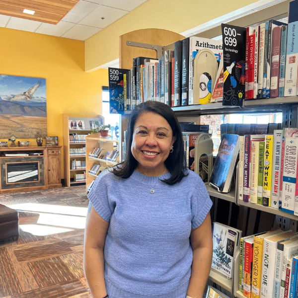 ¡Hola, hola! I began working in the library in November of 2025, after spending twenty years in education. I am excited to continue supporting children and families through literacy and fun learning experiences. One of my favorite parts of the job is singing and dancing during Bouncing Babies. I love watching kids grow while having fun! In my free time I love spending time with my family, hiking, listening to music and taking care of my plants.