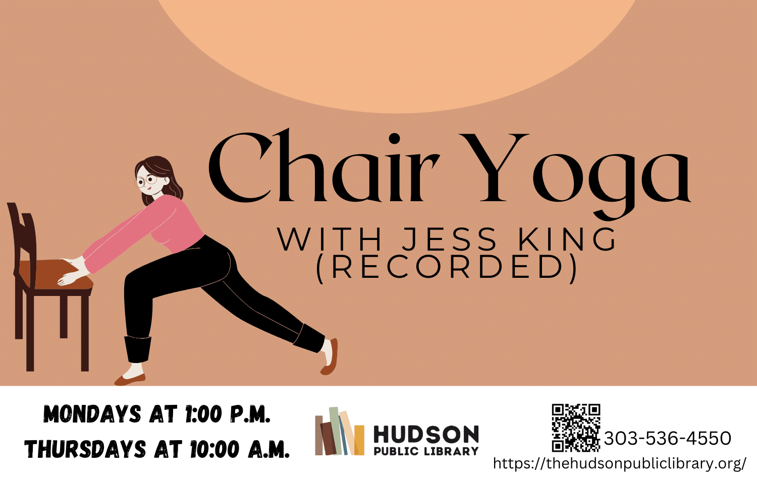 Join Jess King for a chair yoga exercise to strengthen the body, increase mobility, and promote overall health of the mind and body, over a recorded video.