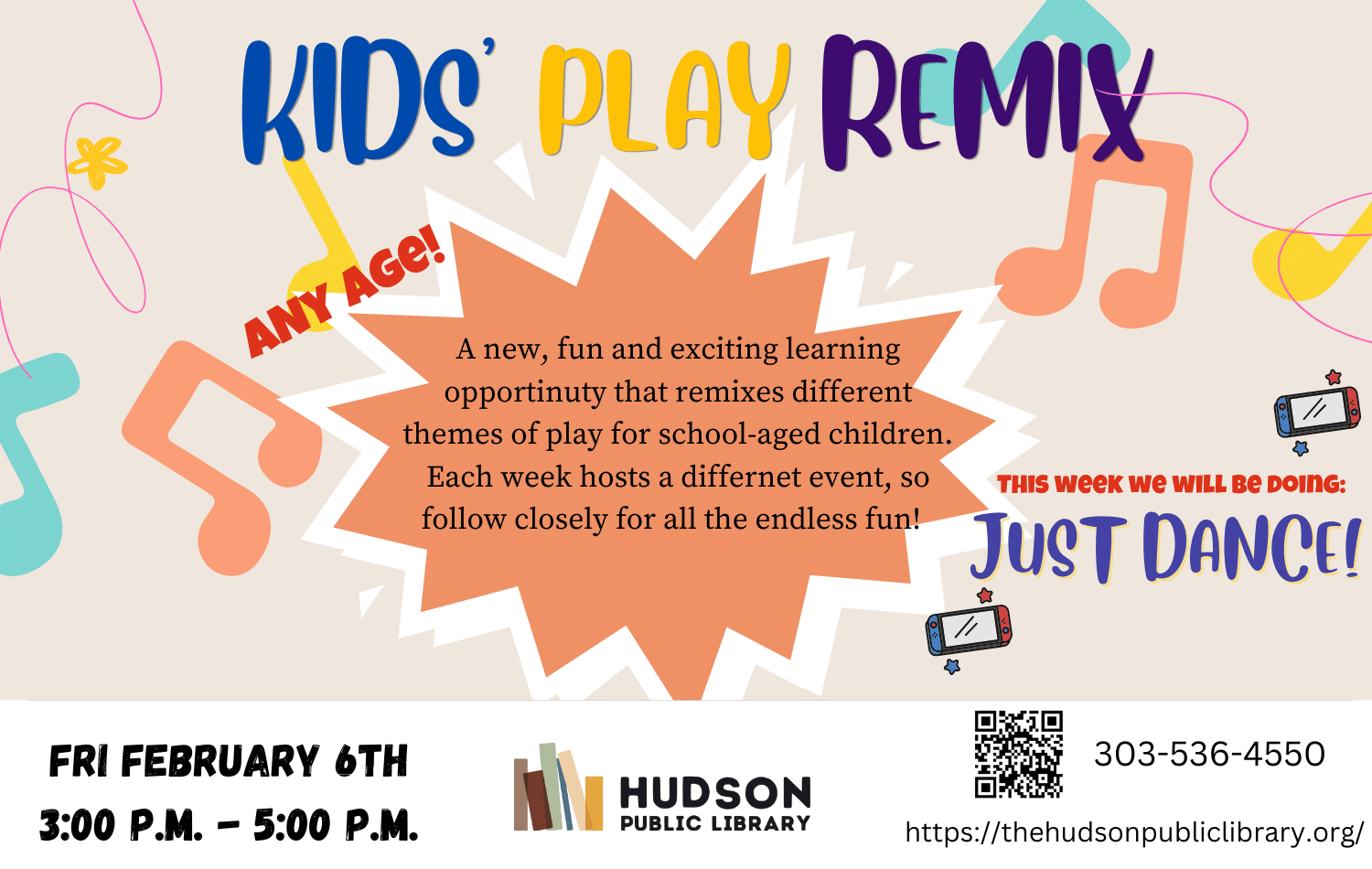 A new, fun and exciting learning opportunity that remixes different themes of play for school-aged children. Each week hosts a different event, so follow closely for all the endless fun! This week, we will be using our library’s Nintendo Switch to play games of Just Dance!